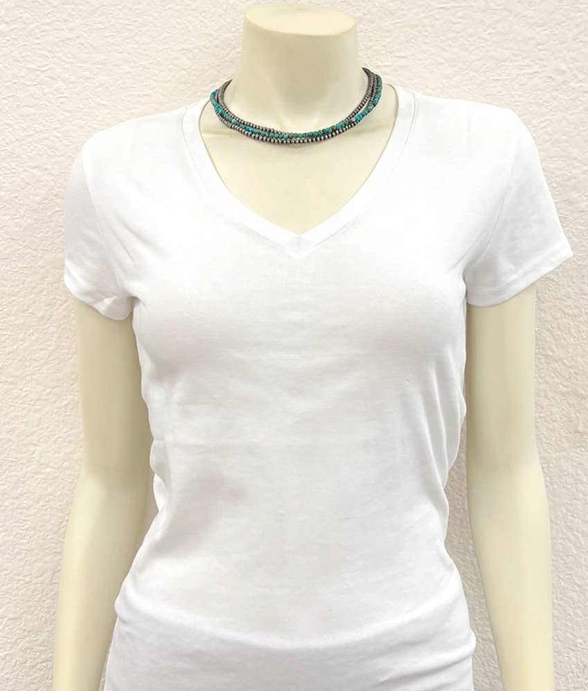 15" to 20" Long, Handmade 3-strand Tiny 4mm Round Gemstone & Navajo Bead Necklace