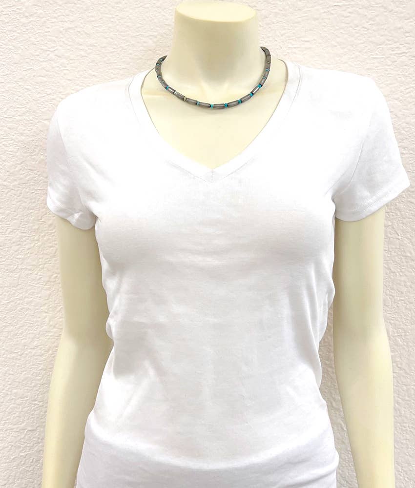 15" to 20" Long, Handmade Tiny 4mm Rondelle Gemstone, Cylindrical Navajo Bead Necklace